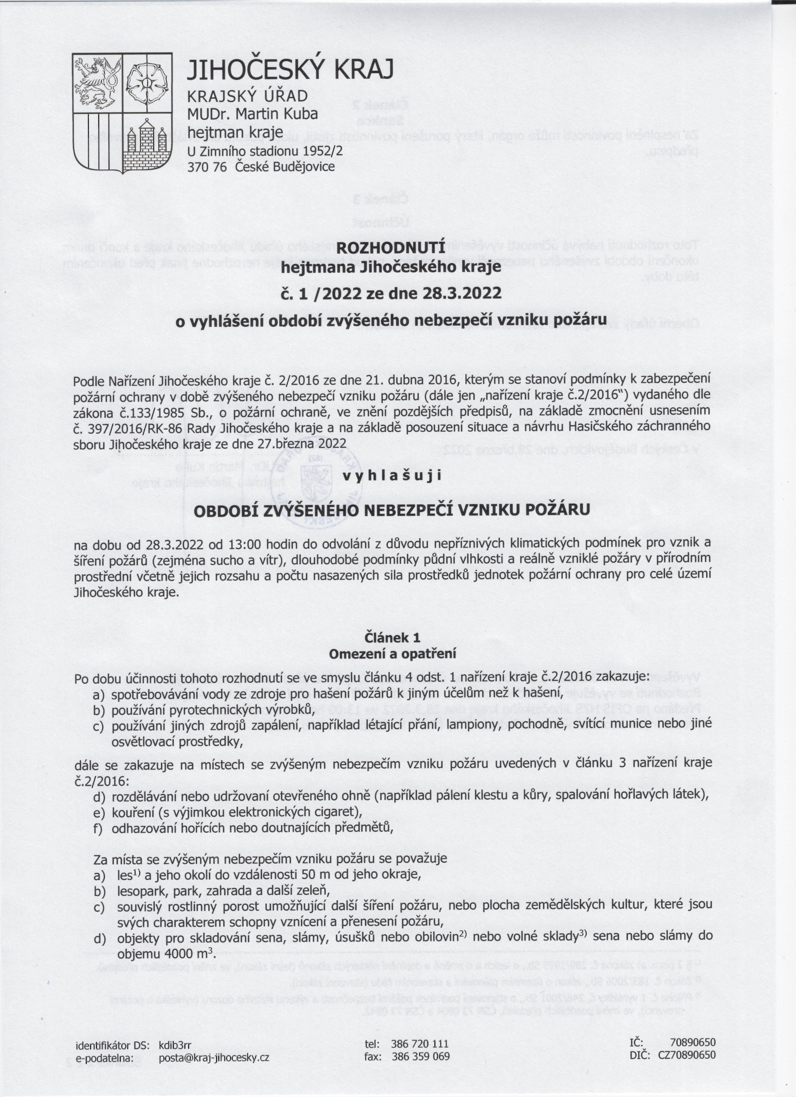 Vyvěšeno: 29.03.2022 Sejmuto: 13.04.2022 Zveřejnil (zodpovídá): Jana Strouhová